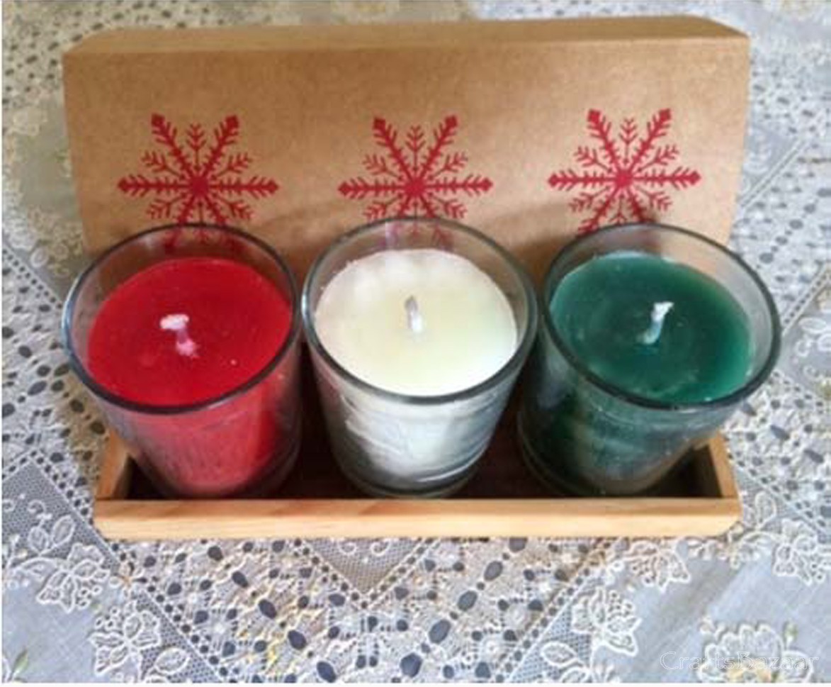 Off White, Red And Green GlassCandles.